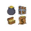There are 4 types of Treasures, with increasingly higher gold rate reward but with the same HP traits: